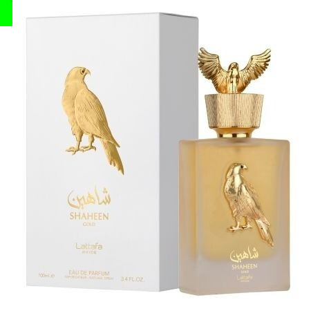 Lattafa Shaheen Gold — глубокий, роскошный, буквально сияющий фужерно-цитрусовый унисекс-парфюм, выпущенный в 2021 году арабским брендом люксовой парфюмерии Lattafa Perfumes в рамках ароматического дуэта «Shaheen». Обе композиции посвящены невероятно популярной на Ближнем Востоке соколиной охоте и отражают разные стороны этого отшлифованного тысячелетними традициями действия.